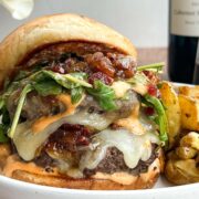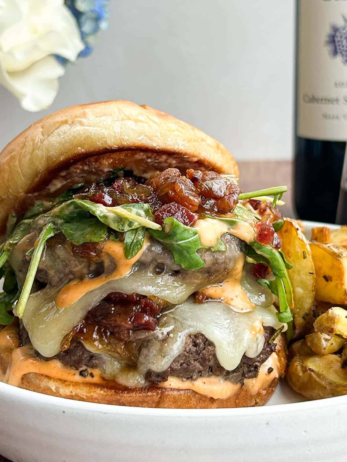 This bacon onion jam burger takes your ordinary restaurant burger to another level! The bacon onion jam adds a sweet and savory element that elevates the juicy beef patties, giving you a mouthful of flavor in every bite.